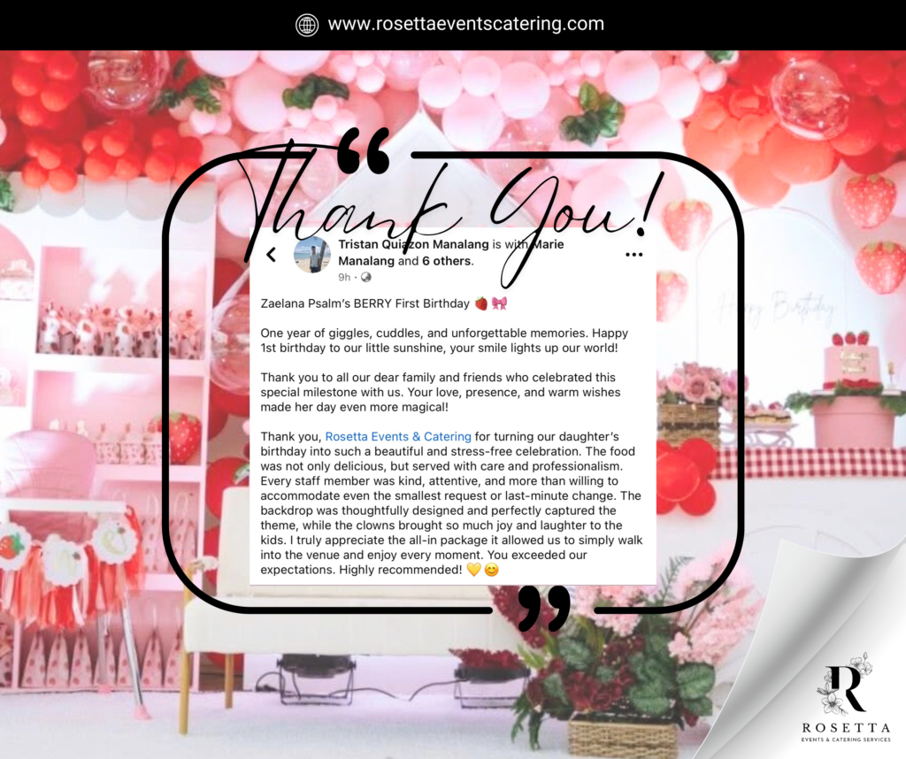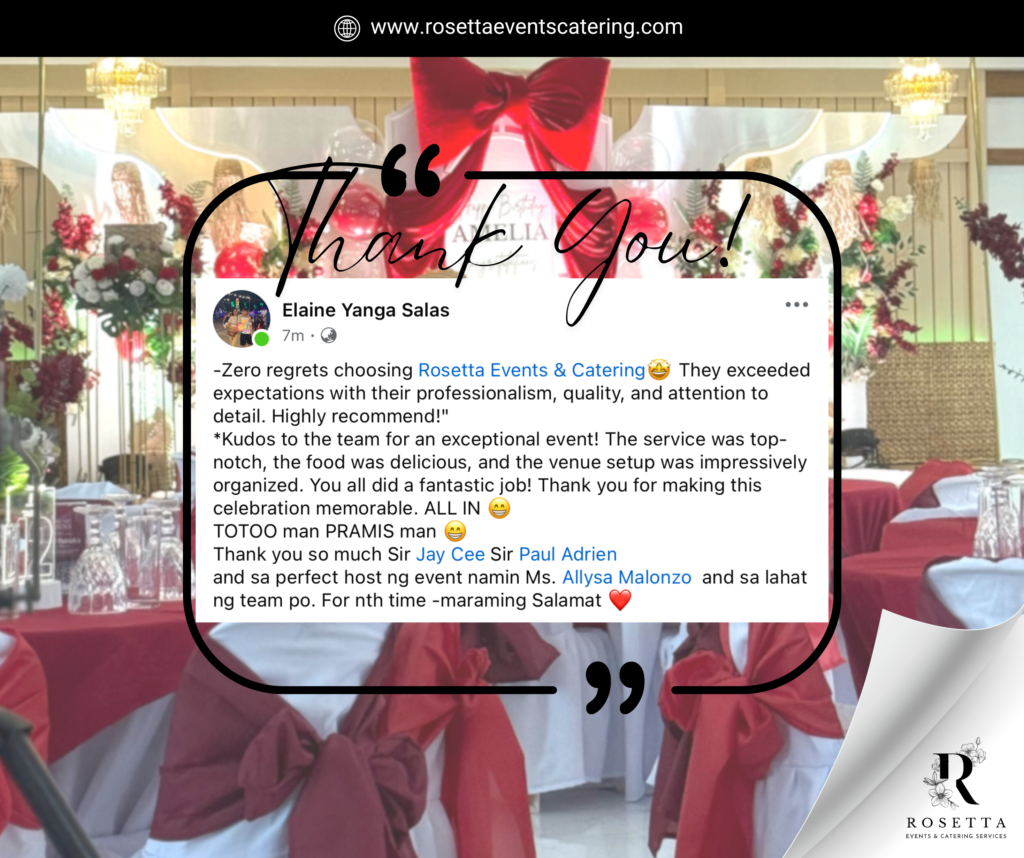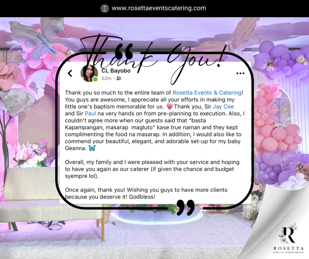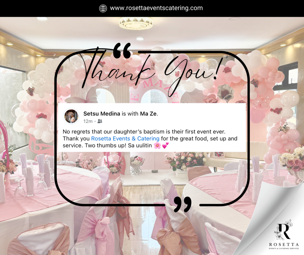 At Rosetta Events & Catering, we believe life’s moments deserve to be celebrated. Inspired by our late mother’s love for gatherings, we turned our passion for event planning and décor into a way to create unforgettable experiences. Whether it’s an intimate affair or a grand celebration, we craft seamless, stress-free events that reflect your vision. Based in Pampanga, we proudly serve neighboring cities and provinces, ensuring your events are as exceptional as you are.